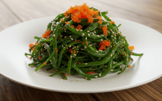 해조류 샐러드는 서양식 드레싱과 만남으로 탄생한 퓨전 요리입니다. 미역, 톳, 다시마를 데쳐서 물기를 제거하고 양상추, 방울토마토와 함께 담습니다. 올리브오일, 레몬즙, 꿀, 소금으로 만든 드레싱을 뿌리면 상큼하고 건강한 샐러드가 완성됩니다. 견과류를 토핑 하면 풍미가 더욱 좋아집니다.
